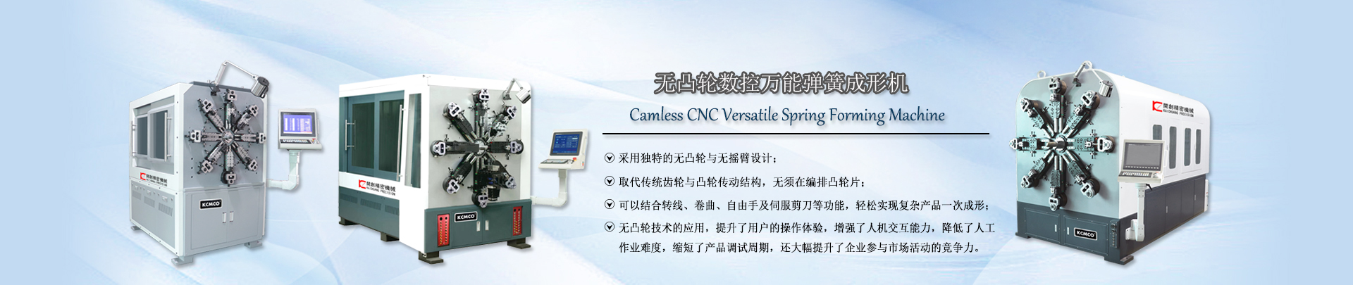 主營產品: 彈簧機械   全自動彈簧機   數控彈簧機   電腦彈簧機   數控高速卷簧機   數控萬能彈簧機   無凸輪彈簧機   電腦壓簧機   八爪彈簧機   轉線彈簧機   彈簧機價格
